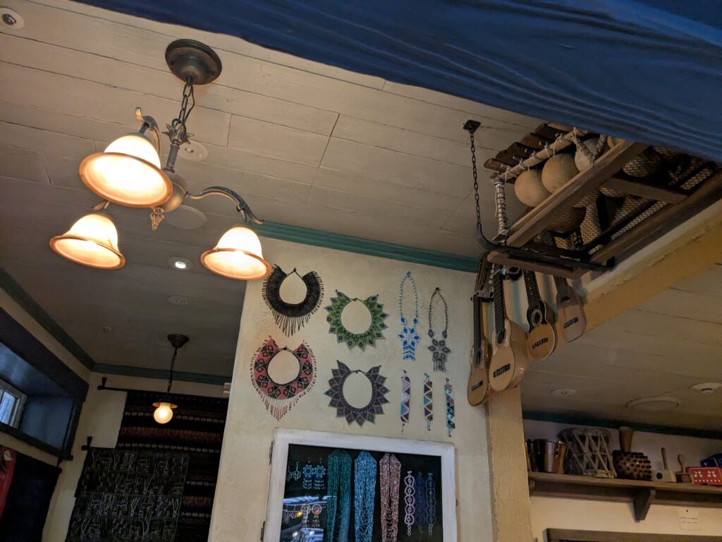 村の民芸品や楽器の屋台が並ぶ一角にある建物で、