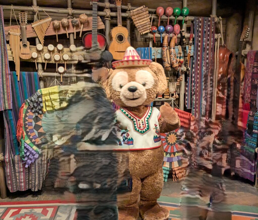 ロストリバーデルタにある、ラテンアメリカの衣装を身に着けたダッフィーに会えるグリーティング施設。