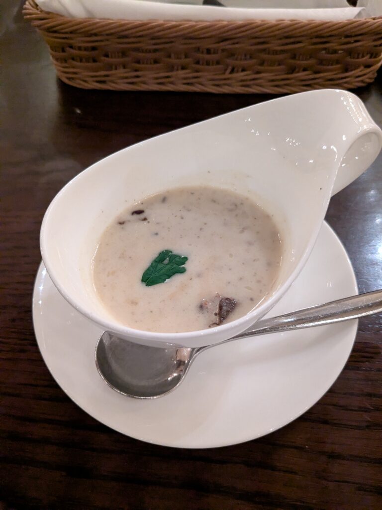 シェフおすすめスープ(キノコのクリームスープ、トリュフの香り) \800