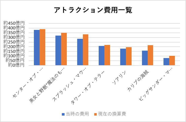 2、主要アトラクション・エリアの建設費一覧
