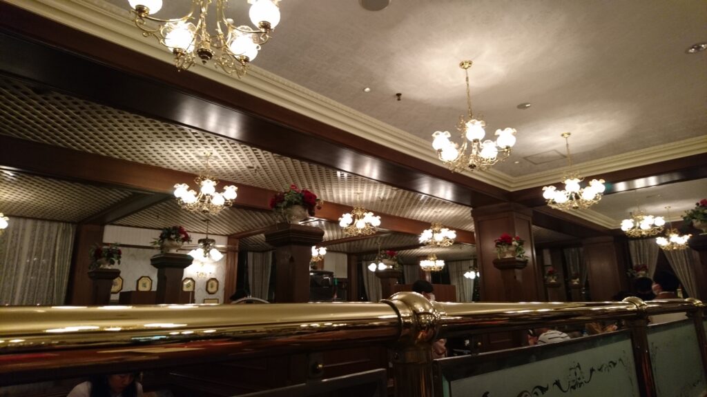- 先に書いたように、建物の2階部分には実際には使われない“偽の部屋”が作られていますが、実際に入れるのは「れすとらん北斎」と会員限定のラウンジ「CLUB33」だけと言われています。
