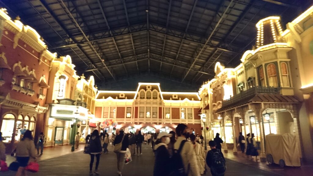アメリカのディズニーランドでは「メインストリートUSA」と呼ばれるこの通り。