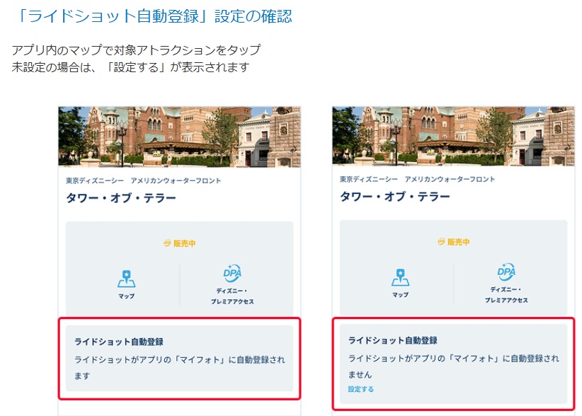 タワー・オブ・テラーに乗車する前に、事前に「ライドショット自動登録」