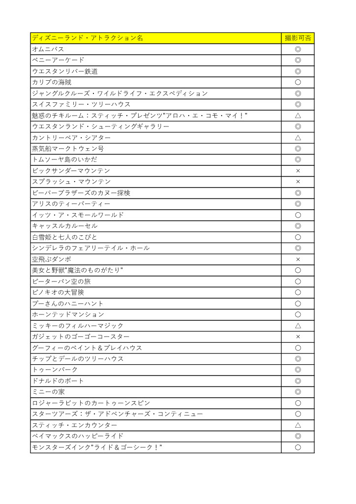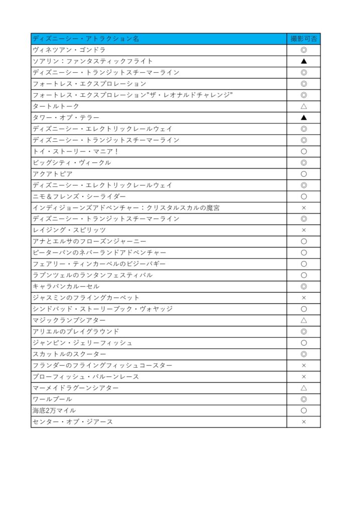 アトラクション乗車中の撮影可否をいくつかのパターンに整理し、
