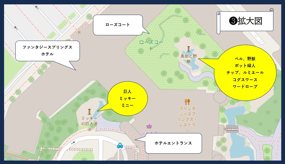 ■❸拡大図 ファンタジースプリングス・ホテル敷地内(宿泊者のみ鑑賞可):